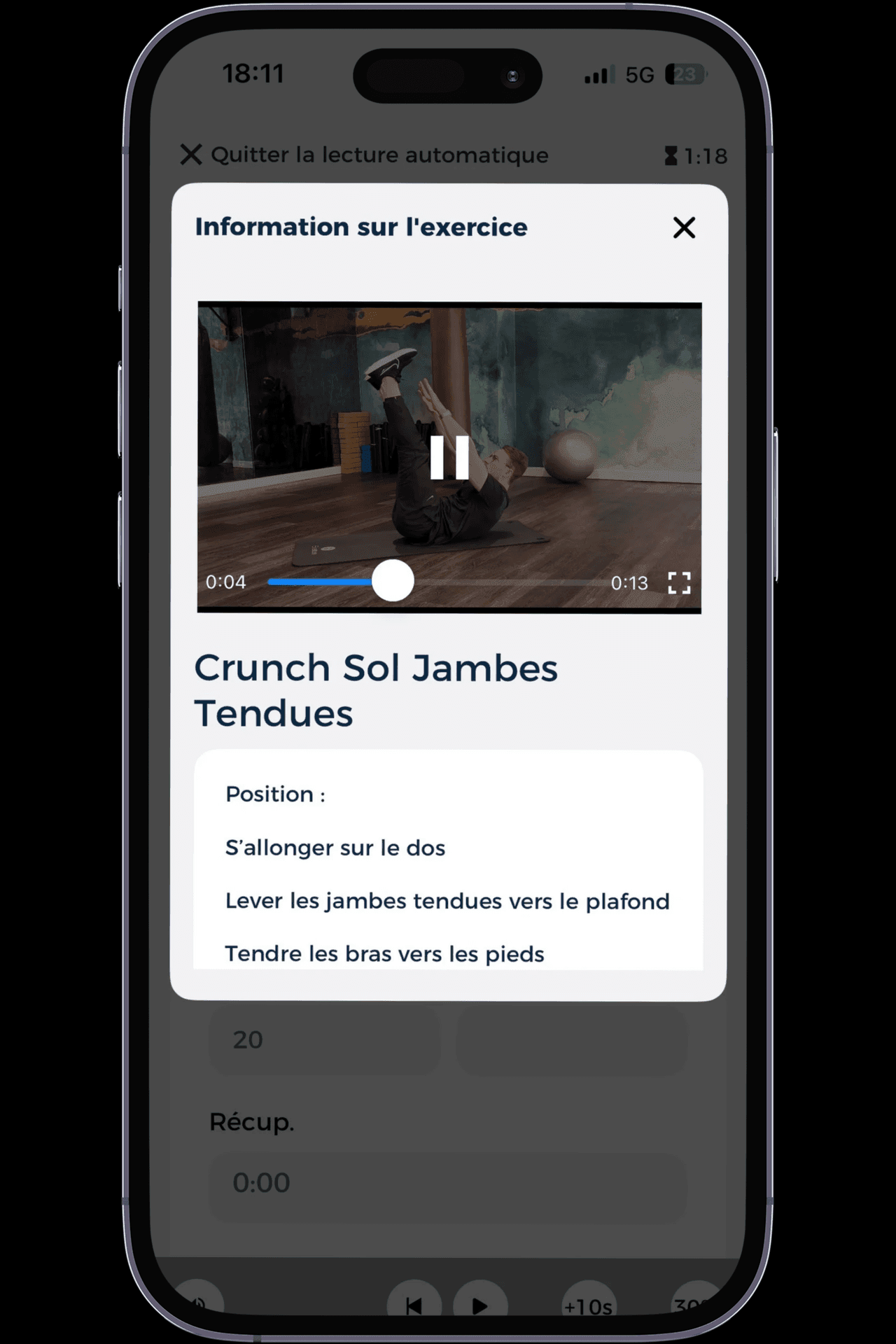 Vous y retrouverez : Toutes vos séances sur-mesure, des vidéos personnalisées pour chaque exercice, des descriptions précises et détaillées de chaque mouvement, un suivi exclusif de vos charges et de votre progression, de courtes séances à réaliser chez vous.